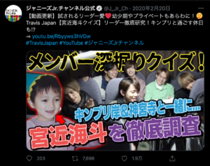 You TubeのジャニーズJr.チャンネル公式で、宮近さんの幼少期の画像が流れていました!