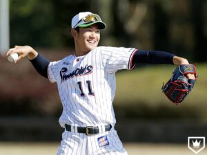 身長178㎝、体重89㎏と大きな体が特徴的で低い軌道から猛烈なスピードで二塁へ到達する送球が持ち味の選手です。
