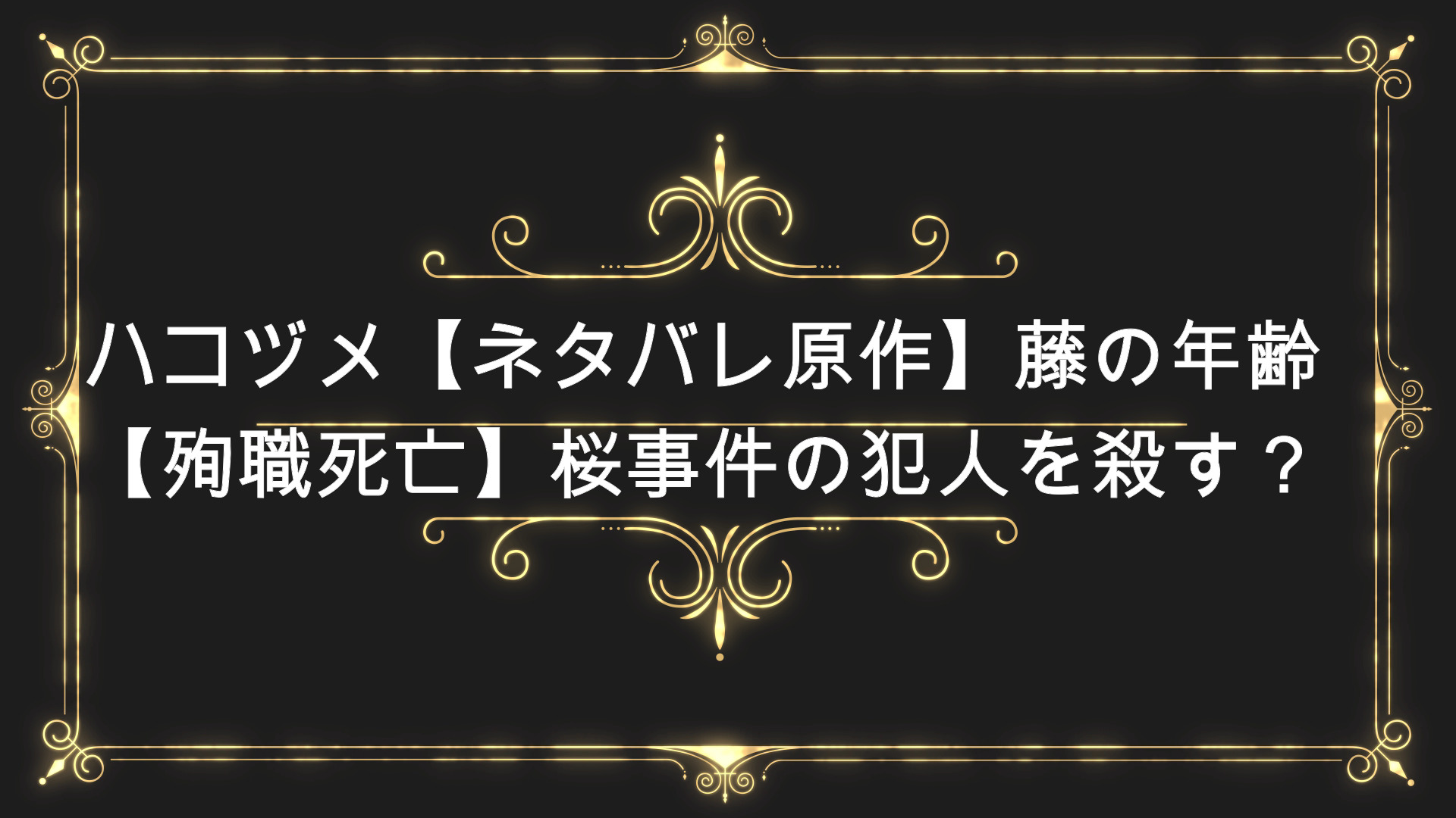 ハコヅメ【ネタバレ原作】藤の年齢【殉職死亡】桜事件の犯人を殺す?についてはカンタンにまとめると以下のようになります。