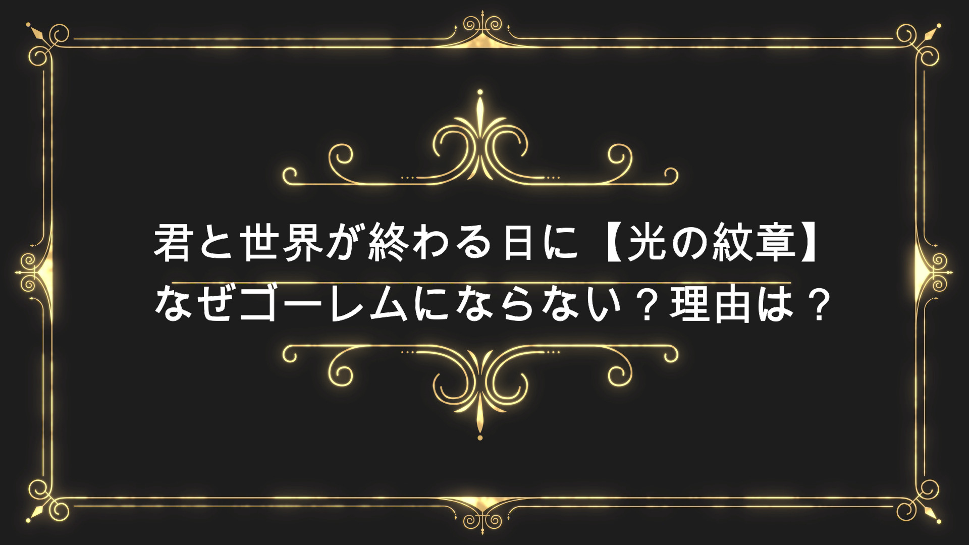 君と世界が終わる日にの特別編とシーズン3から登場している光の紋章光の紋章は明らかに今までの登場人物とは違いゴーレムの仲間という立ち位置になっています!