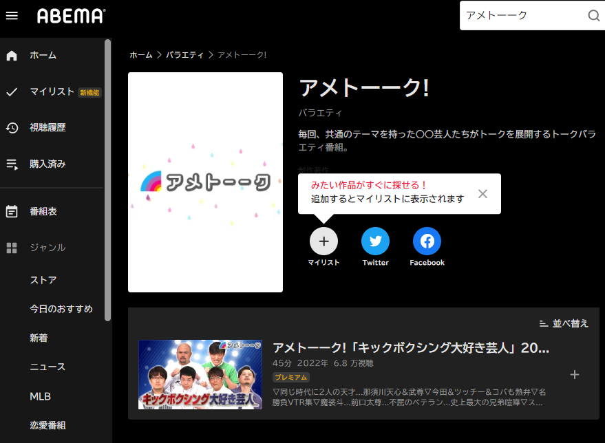 しかしアメトーークは基本的に見逃し配信ができないのでこのように見逃し配信があるだけでも嬉しいですね!
