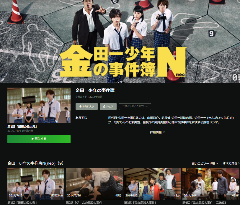 今回の金田一少年の事件簿は期間限定で無料で視聴できます⇩