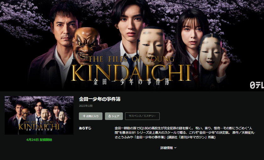 2022年4月24日の22時30分から毎週日曜日に放送されとぃる『金田一少年の事件簿』