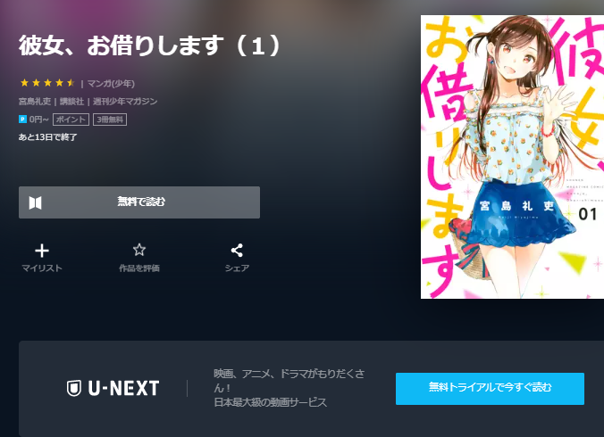 期間限定で彼女お借りしますの漫画やアニメを完全無料で視聴可能⇩
