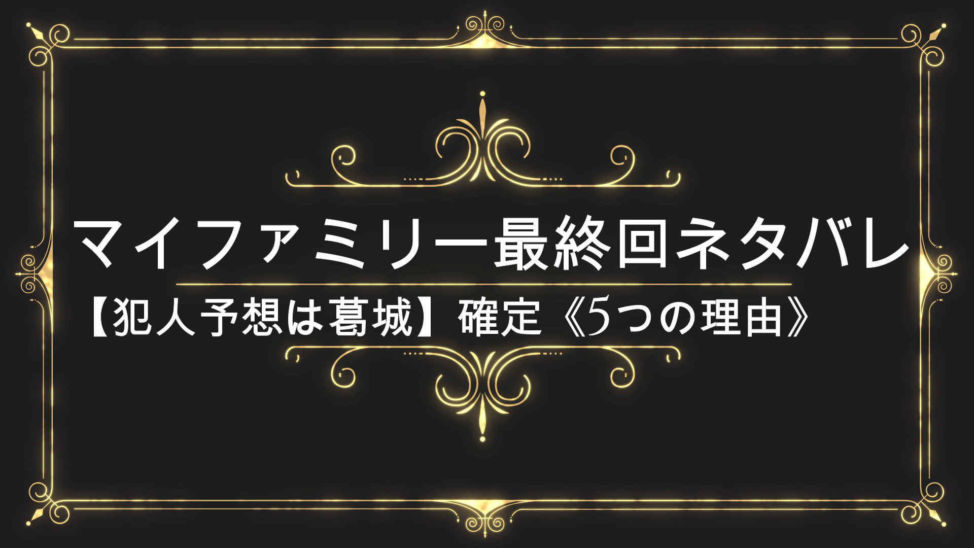 マイファミリー最終回ネタバレ【犯人予想は葛城/玉木宏】《5つの理由》