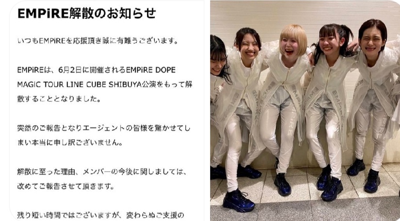 2022年5月30日に人気急上昇中のガールズグループ Empire がグループを解散させることを発表しました!