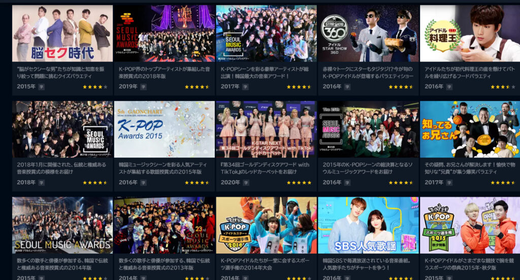 他にもかなり多くの K POP のライブなどや見逃し配信なども見ることができます!