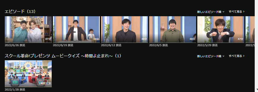 過去のスペシャルや過去の通常の放送なども無料で見放題!