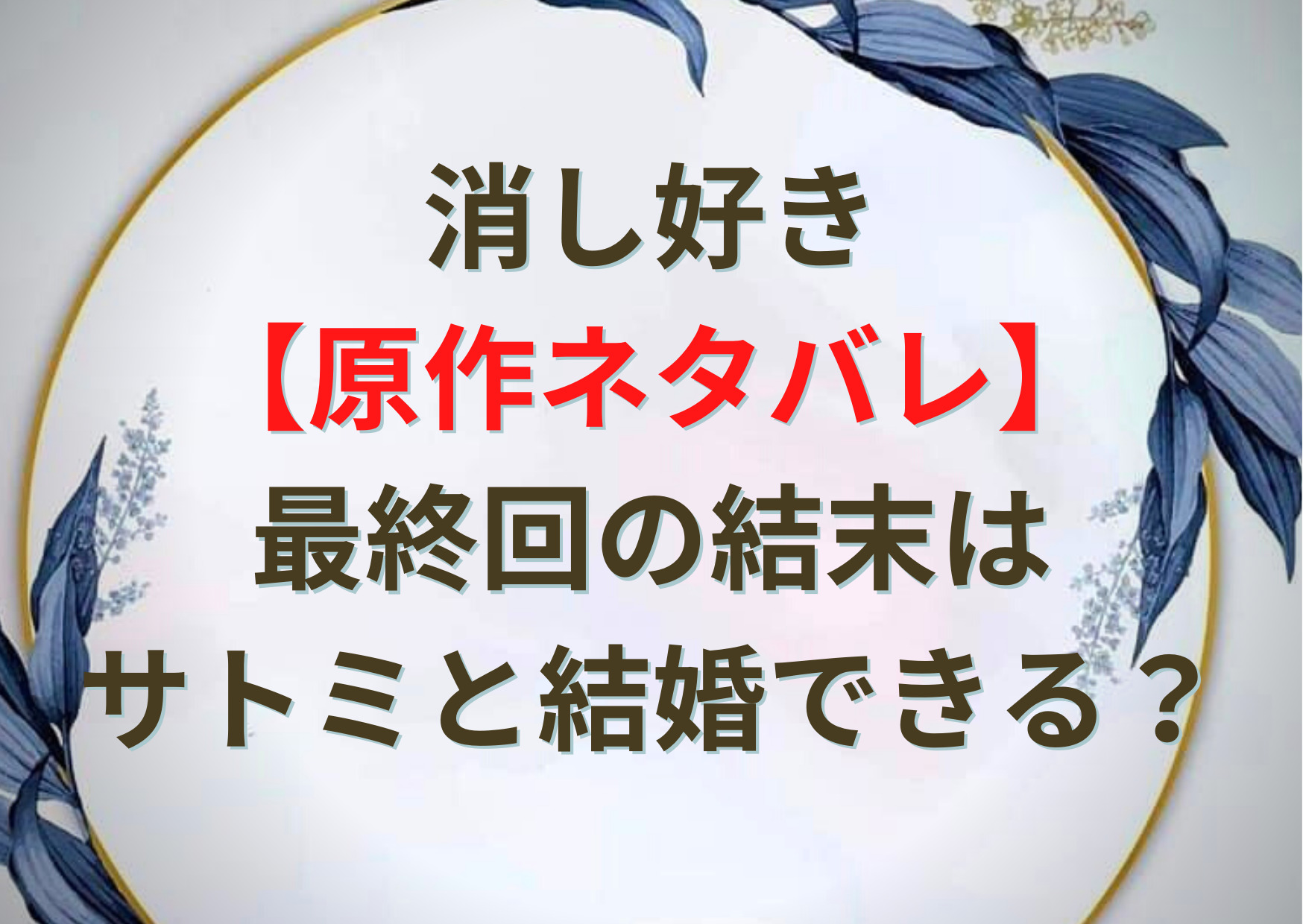 消し好き【原作ネタバレ】最終回の結末はサトミと結婚できる?小説との違いは?