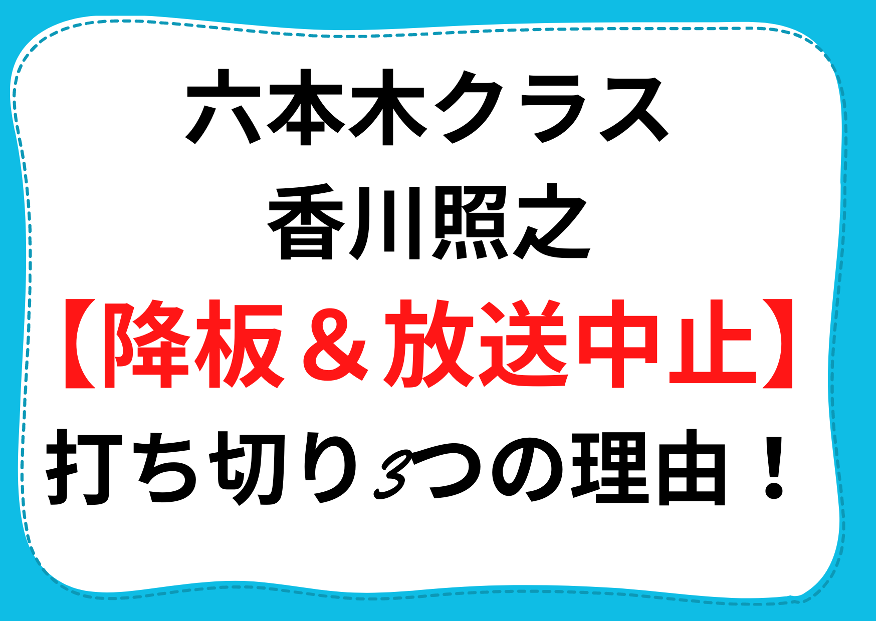 今回、香川照之さんが六本木クラスの中でもメインのキャラクターになっていますが香川照之さん個人的なプライベートのスキャンダルにより放送の中止や交番などもかなり可能性が高いのではないかと言われています。