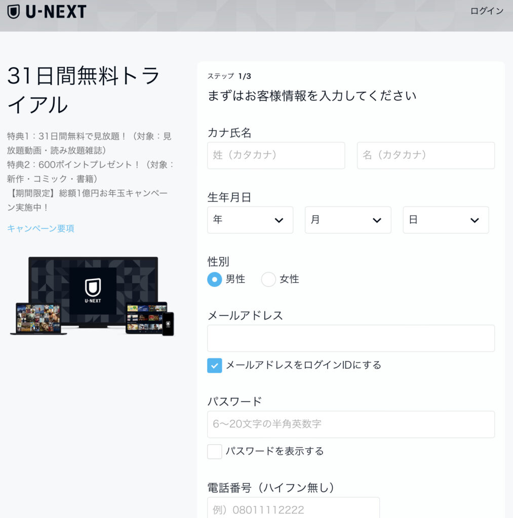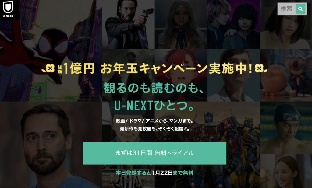 U-NEXTは本来金額がかかりますが、現在キャンペーン中で31日間無料トライアルができます。