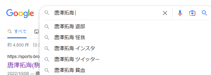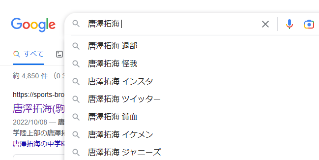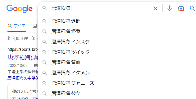 それでは実際に彼女がいるのかということについてですがネット上でも彼女がいるのかどうかということで注目され話題になっていますが実際に Google の検索のキーワードでもこのように彼女がいるのかと疑問に思う人がかなり多くなっています。