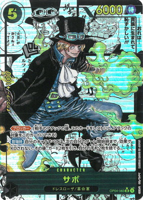 【スーパーパラレル】 0204-083 サボ SR コミックのカードは、コミック版ワンピースカードゲーム第4弾「ドレスローザ」にランダムで封入されているスーパーパラレルという特別なカードです。