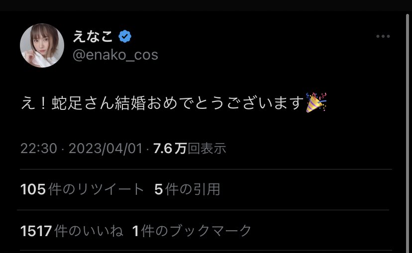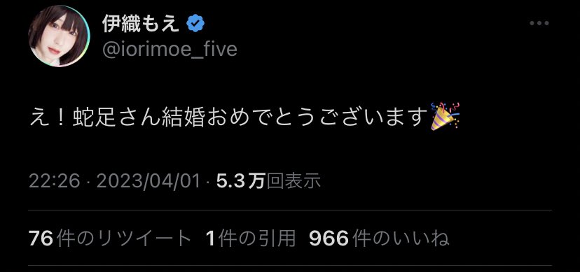 2023年4月1日に蛇足さんが結婚したことを発表しました。