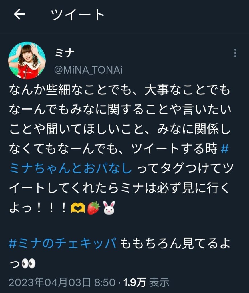 ミナは一期生として、リチが抜けた後をミクと一緒に引っ張っていって欲しかった。