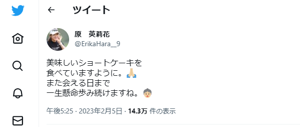 今回の 匂わせについてですが こちらの原英莉花の Twitter のツイートが匂わせだと言われています。