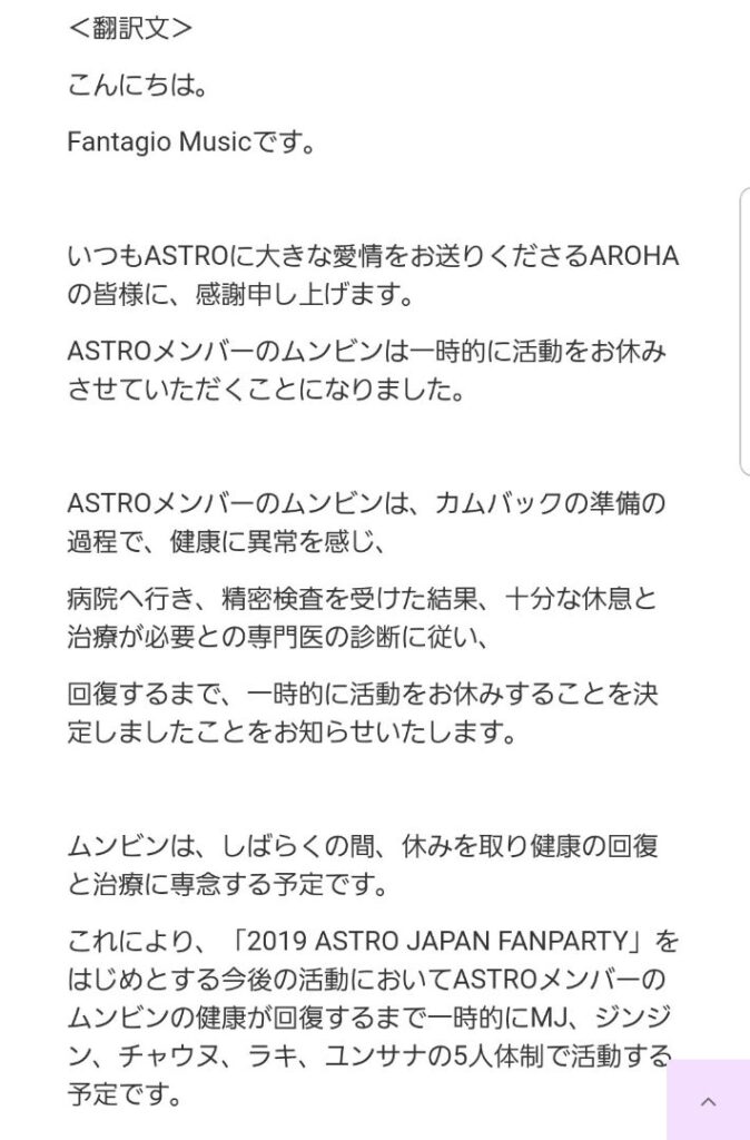 2019年11月13日に1次活動休止 アストロのムンビンについては 一時期 公式でも発表されていますが このように活動を吸収していることがわかっています。