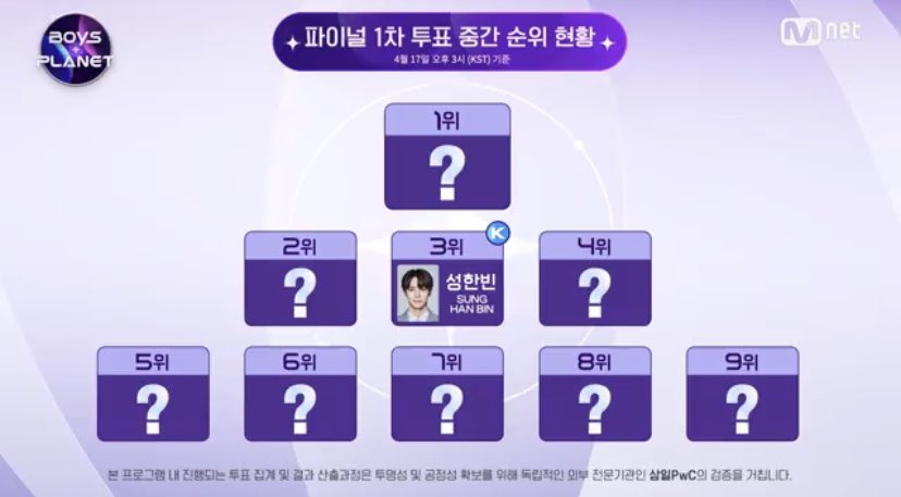 まず 中間順位で衝撃を受けたのがハンビン君が初めて 順位を落として 3位になったことについてですね。
