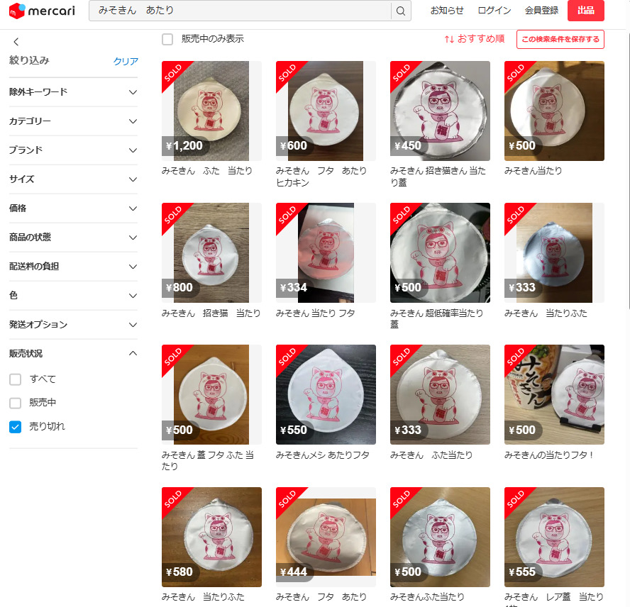 それ以上の得というのは何なのかというと 実は今回のこの当たりの蓋についてはかなり高額で売買されており メルカリでは数百円から1000円以上の価値があるということが分かっています!