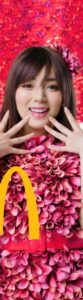 マクドナルドは、彼女の個性を活かして、多くの人々に商品への関心を引き付け、広告効果を最大化しようとしています。