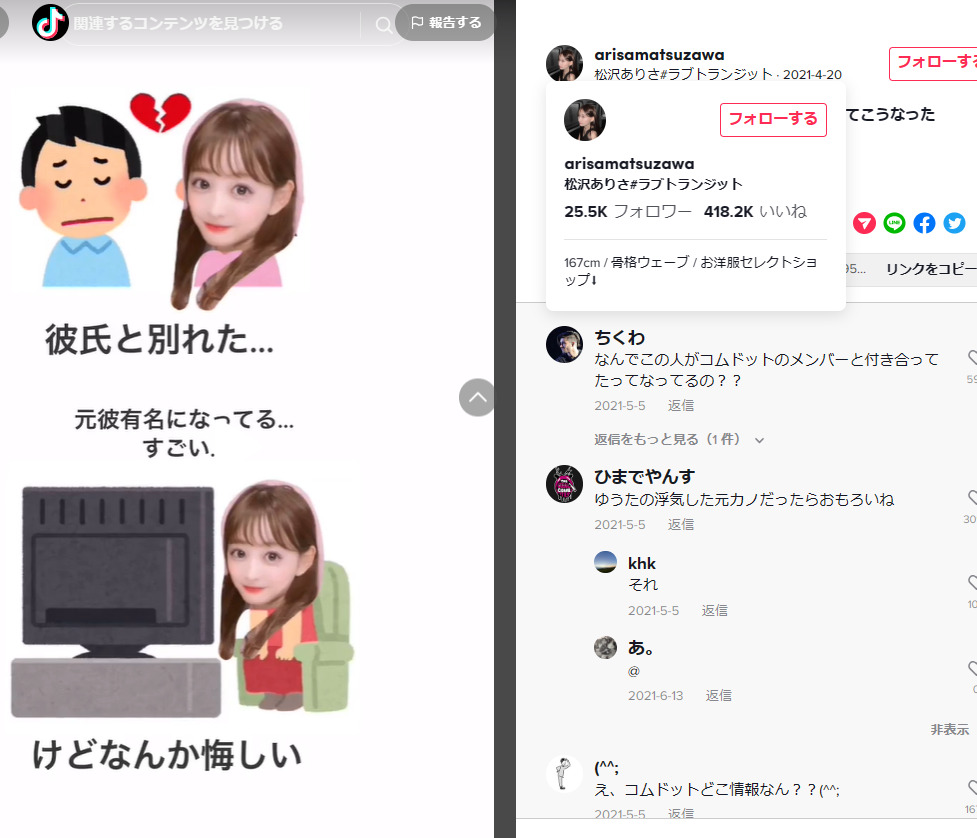 本人が自分自身の tiktok で以下のような tiktok の動画画像をあげていました!