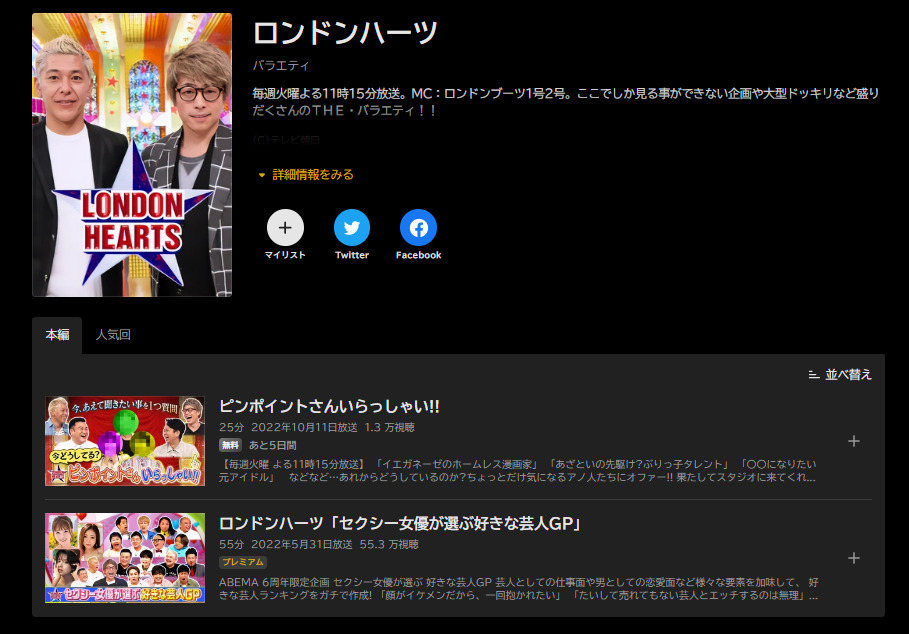 またAbema プレミアムはアメトーークの過去の放送やロンドンハーツなど他の作品も視聴が可能になることがあるので、しっかりと見逃し配信があるかどうかを確認した上で登録しましょう。