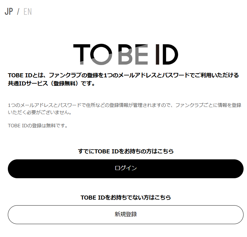 まず、【TOBE】ID登録(無料)をします。