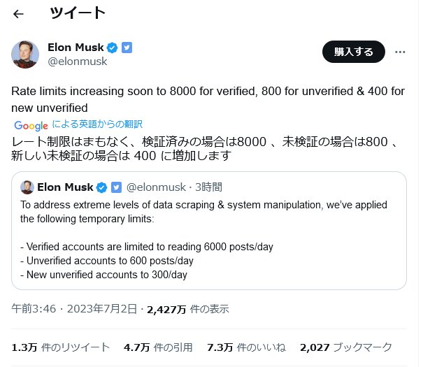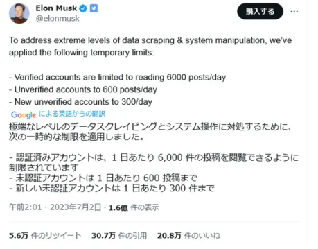 2023年7月1日:イーロン・マスクが閲覧制限を発表