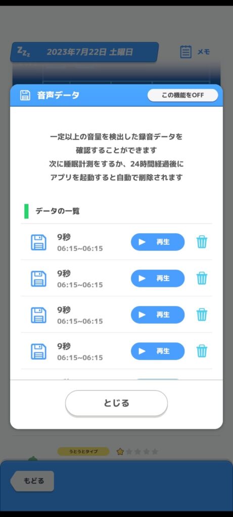 というのも 実は24時間以内の睡眠データの録音データしか再生することはできません。
