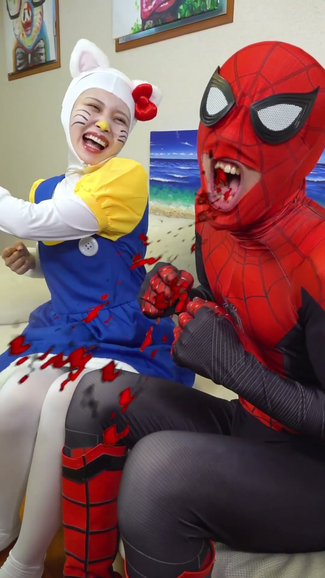スパイダーメーンの動画では、キティちゃんが様々なシチュエーションに巻き込まれて、面白いリアクションを見せてくれます。