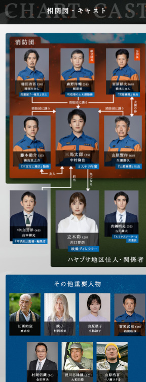 実際に公式ホームページの相関図で右下になぜか協力員で団員ではないにもかかわらず消防団の服起きています。