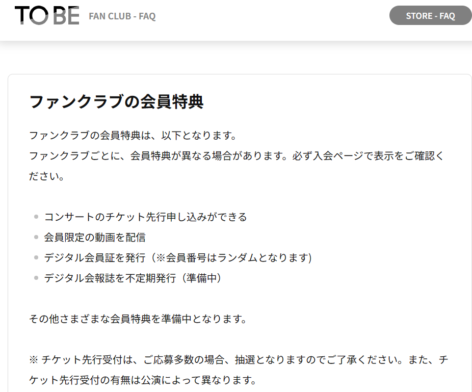 - ファンクラブの特典について
