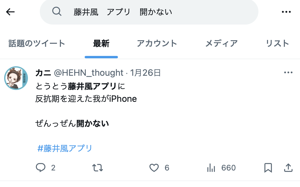 藤井風アプリが、昨夜から全く開かない。スマホの問題なのかな。