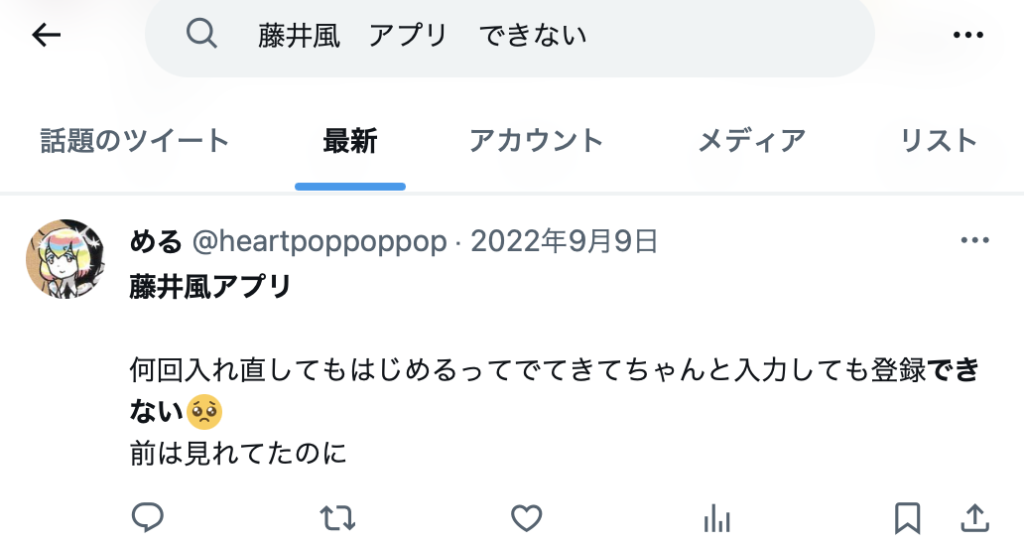 また他にも同じ状況になっていないのかどうかというところを確認するために、Twitterの検索窓で調べてみるのも良いです。というのも、Twitterで検索してみると、かなりリアルタイムで疑問に思っている人もいます。
