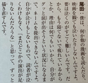わざと寝不足にしたり疲れた状態にしたり、そうすることによってでしか泣けないんですよね。自分が情けないような作品は周りの人も出せないと思うのでそのたびにネームを何回もやり直すんです。