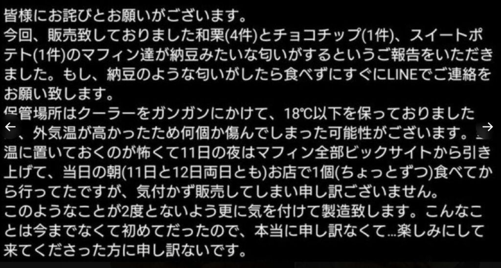 それでは現在マフィンを販売していたお店はどのような対応をしているのか詳しく見ていきましょう。時系列的に解説していきます。