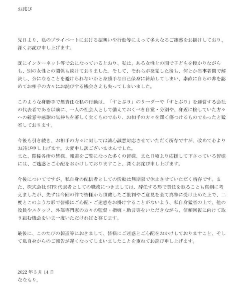 まず1番に考えられる理由としては今回すとぷりのメンバーでリーダーでもあるメンバーが2022年3月14日からスキャンダルによって活動を休止していました。