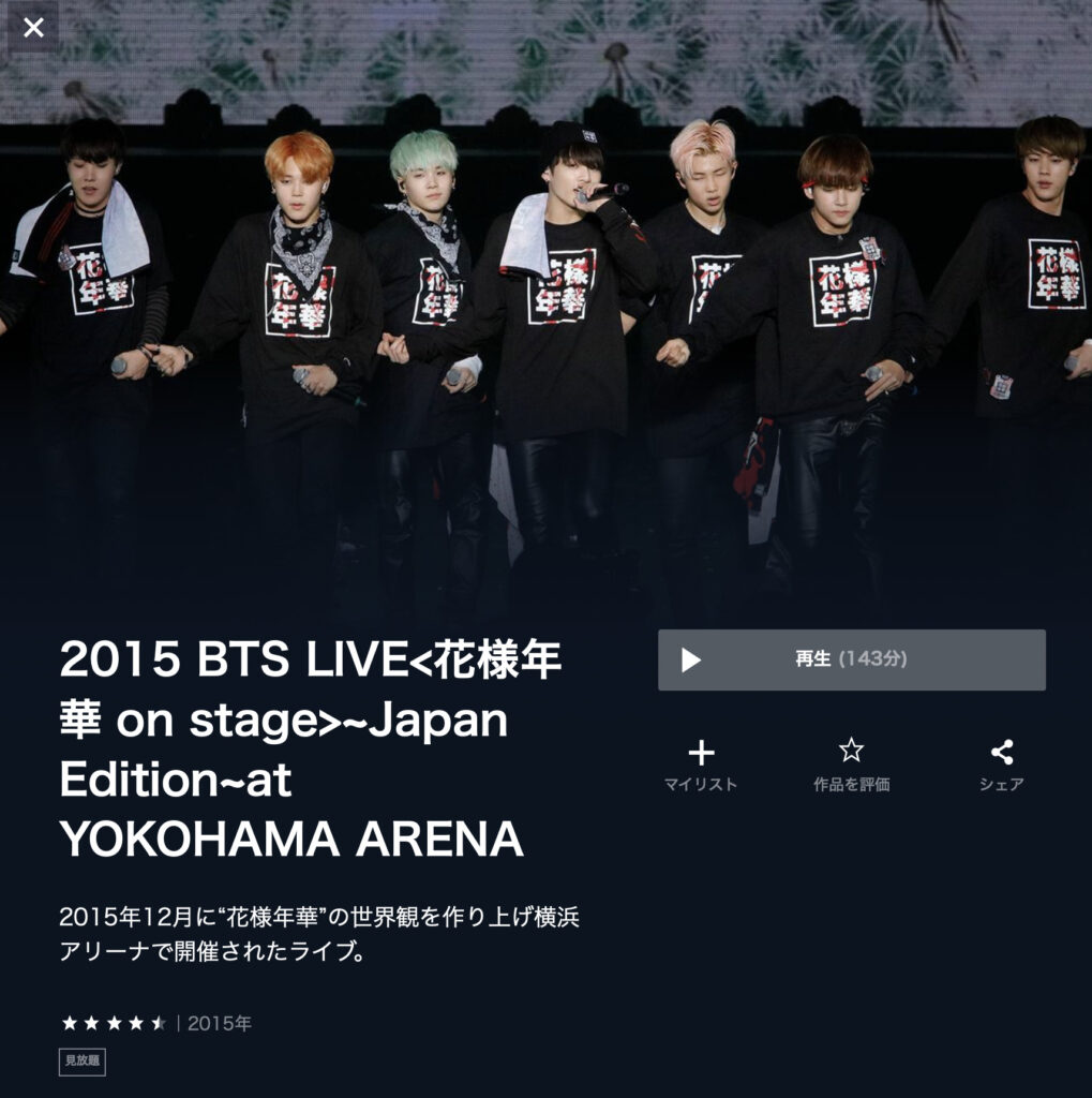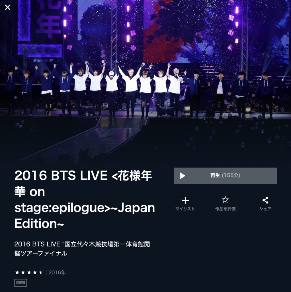 U-NEXT、バンタンの2016年公演のLive見放題はアツいなー