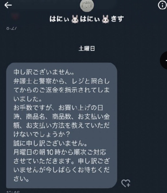 店主は、デザフェスの後にインスタグラムで謝罪文を投稿し返金対応をする11月16日にSNSで発言しましたが、それ以降は連絡が取れなくなりました。