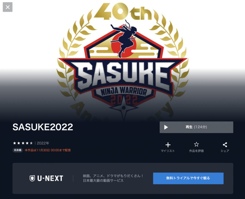 UNEXT会員登録したからSASUKE見まくってる