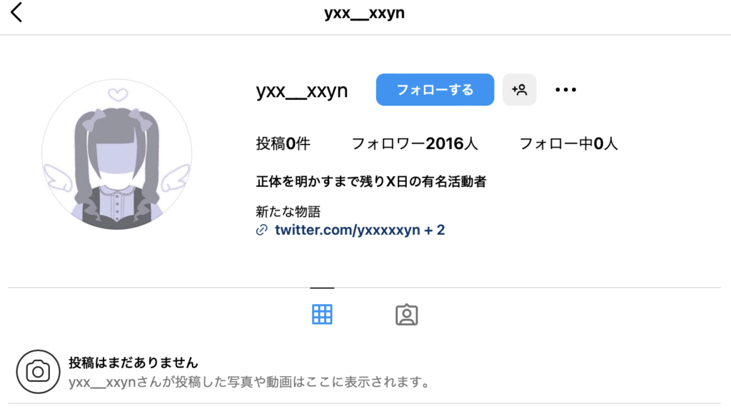 実際に投稿を見てみると、こちらのように何の画像を投稿されていなく、実際に左下に「投稿はまだありません。」と書いてありますね。