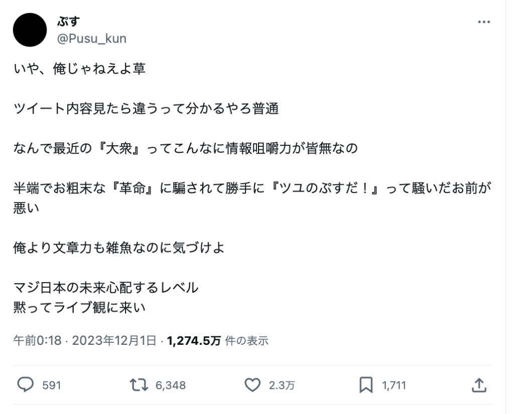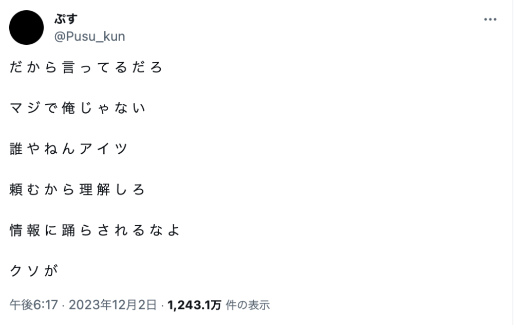 ↓↓↓↓↓↓↓https://t.co/ueIHFVDqS8— 0日後に正体を明かす有名活動者 (@yxxxxxyn) December 2, 2023