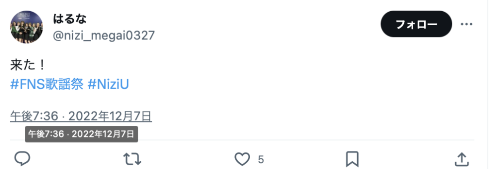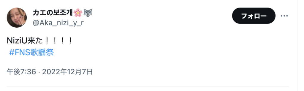 NiziUたちが出演した時間は2022年12月7日の午後7時36分ごろであることがわかっています!