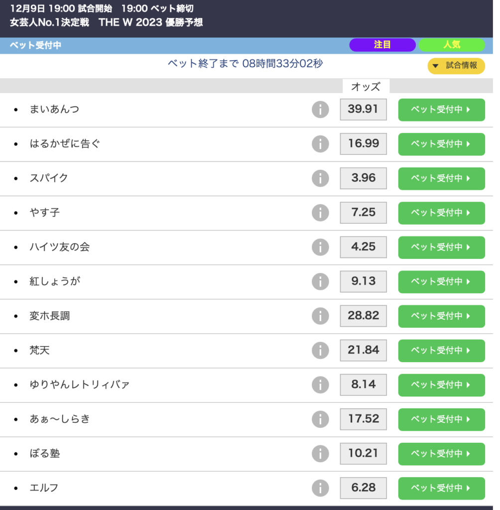 まず、今回の優勝者について、日は誰が優勝者するのかと言うところでベットされています!