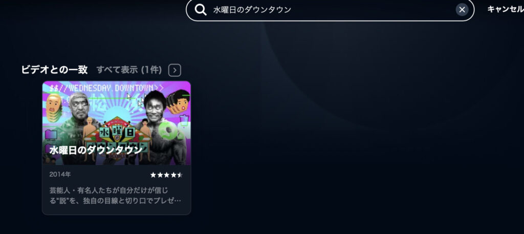 虫眼鏡マークをクリックして水曜日のダウンタウンと入力すると水曜日のダウンタウンが出てくるので水曜日のダウンタウンをクリックします。