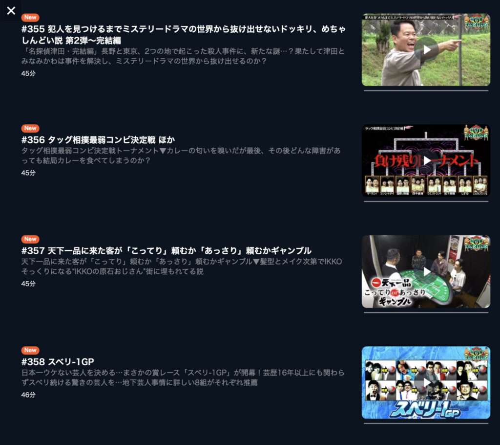 1番右下のタイトルをクリックすると、今回のスベリワングランプリを見ることができます!見逃し配信についてもずっとできるわけではないので、無料で見逃し配信ができるうちに見ておきましょう。