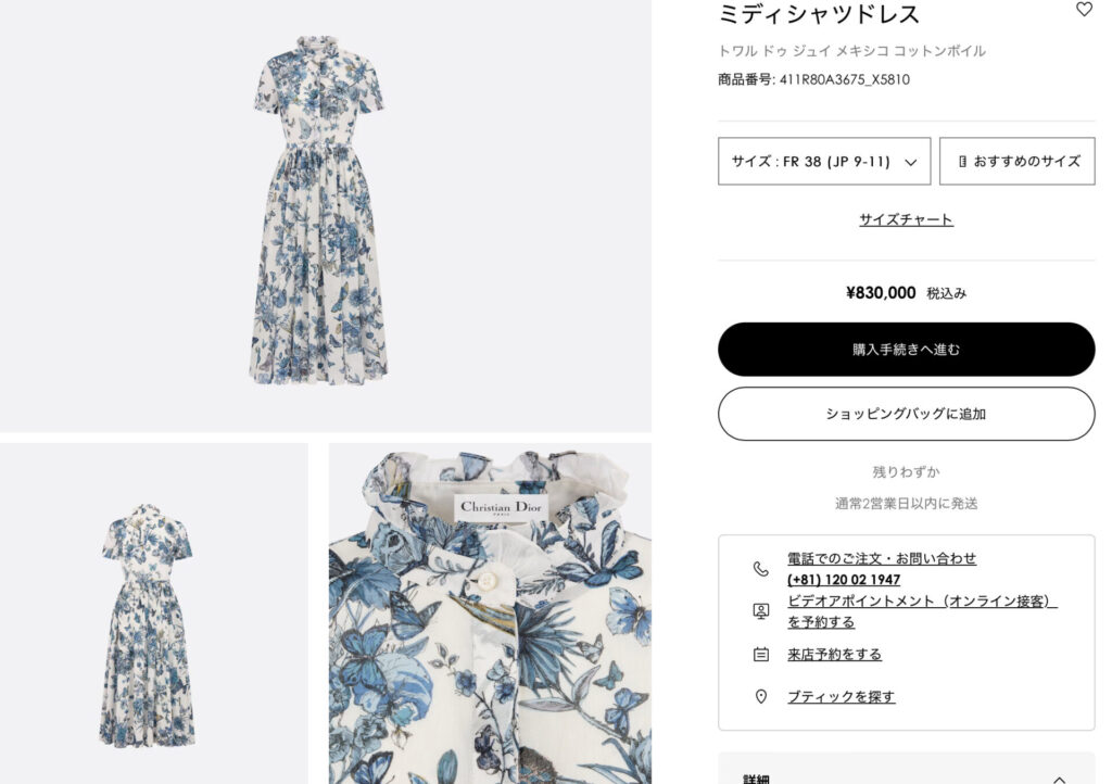 白いドレスについても特定できていて、高級ブランドディオールのドレスであることがわかっています。ディオールの商品となっていて、金額はその当時は660,000円でした。