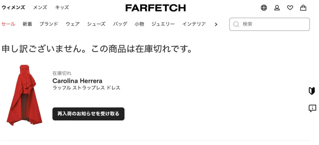 実際にこの商品についてもすでに振り切れていて、本当に多くの人から注目されているドレスであることがわかりますね。