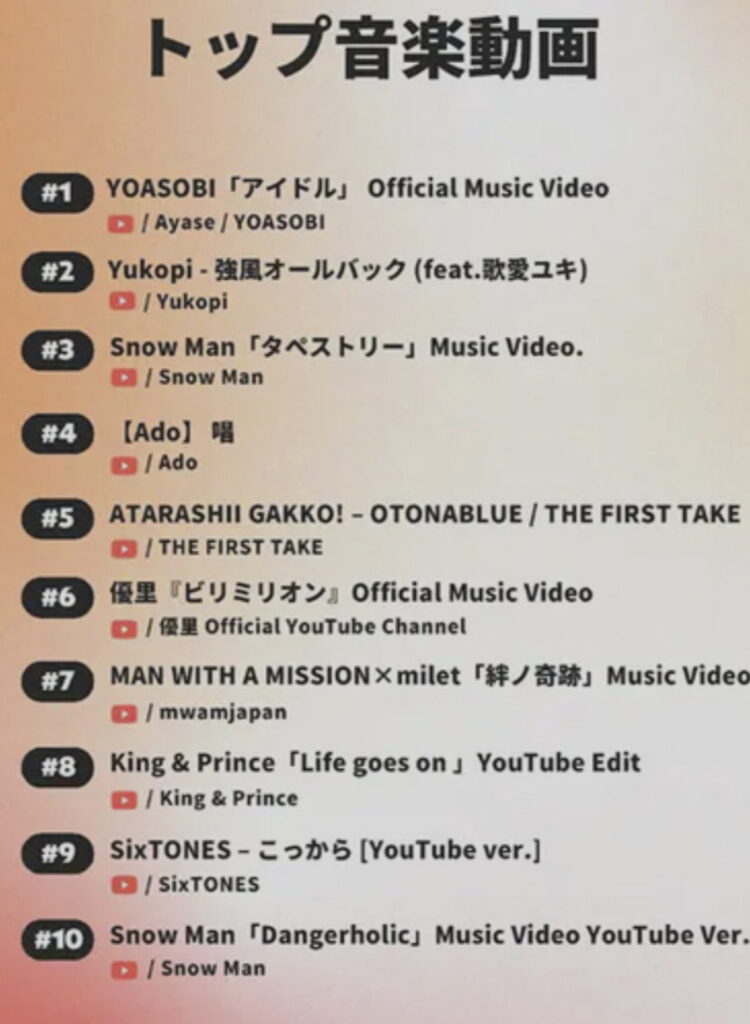 しかし、最もコメントして多かったのは、YOASOBIとAdoの2組を差し置いてなぜミセスが最優秀作品賞になるのかと言うことで違和感を感じている人は1部で存在するようです。というのも、YouTube再生回数のミュージック部門でミセスがなかなか上位を獲得できていません。