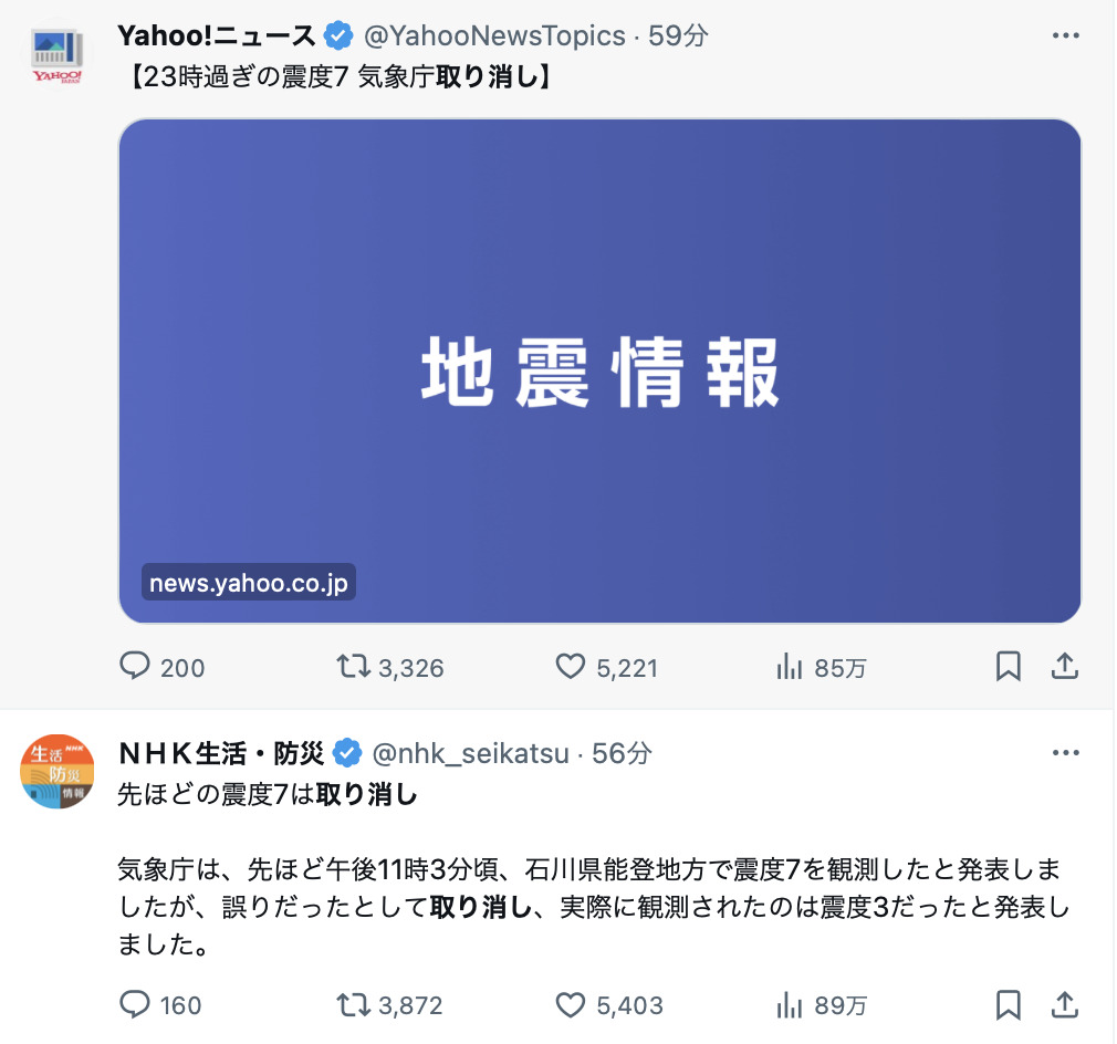 しかし実はその後震度7の地震は誤報であり取り消されました。